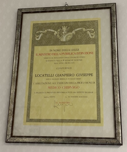 Il Dott. Gianpiero Locatelli esercita la sua professione nella provincia di BS. Dal 28/01/1981 è iscritto all'albo Provinciale dei Medici Chirurghi di BRESCIA col numero 3342 .