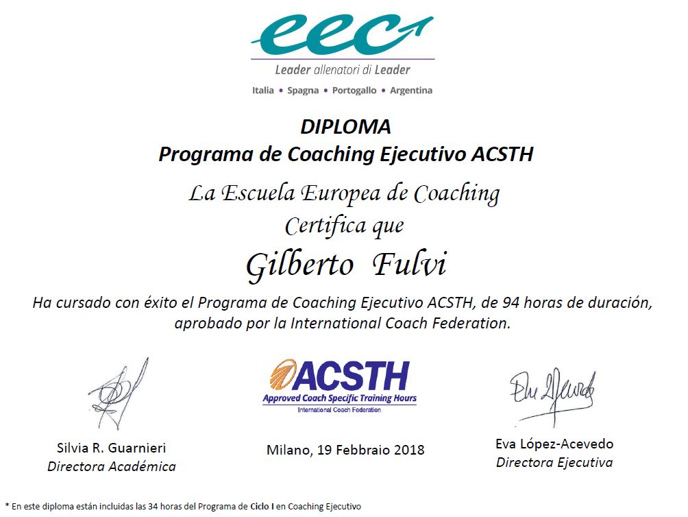 Come Business Coach il Dottor Fulvi è preciso, incalzante, dialogante. Mette sul tavolo l'intera situazione, fa venir voglia di sviluppare visioni, aiuta nell'elaborazione della strategia, facendo anche un lavoro da psicologo sui punti deboli e scelte che non sempre rispondono a questioni razionali. Empatico e simpatico ma soprattutto funziona !