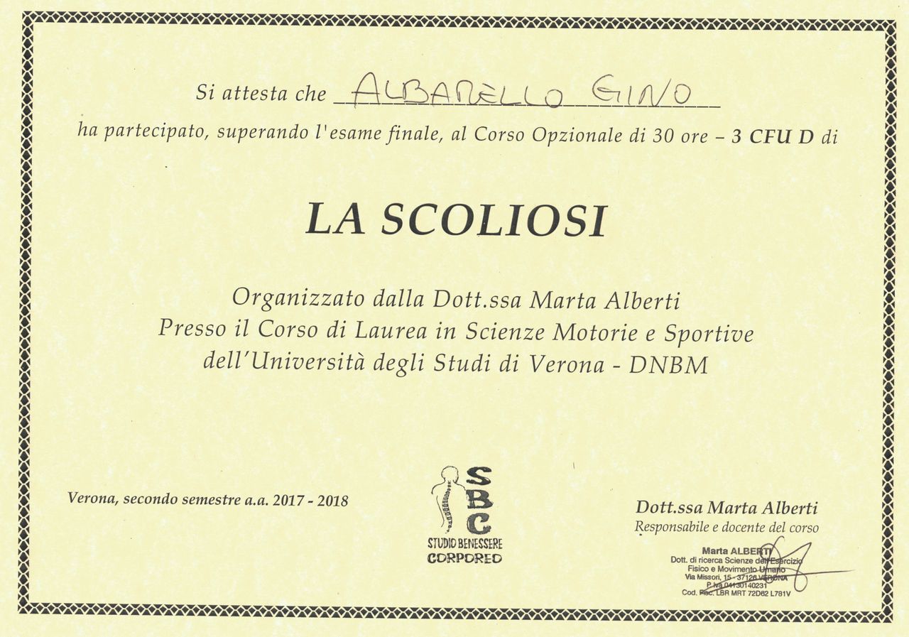 Sono un chinesiologo e mi occupo di rieducazione motoria ed esercizio fisico adattato. Sono specializzato nel trattamento di patologie acute e croniche come mal di schiena (lombalgia), dolore alla cervicale (cervicalgia), sciatalgia, ipercifosi, dolori alle articolazioni e postura scorretta. Integro l'esercizio fisico con il massaggio per poter ottenere il meglio da ogni seduta e per accorciare i tempi di recupero.