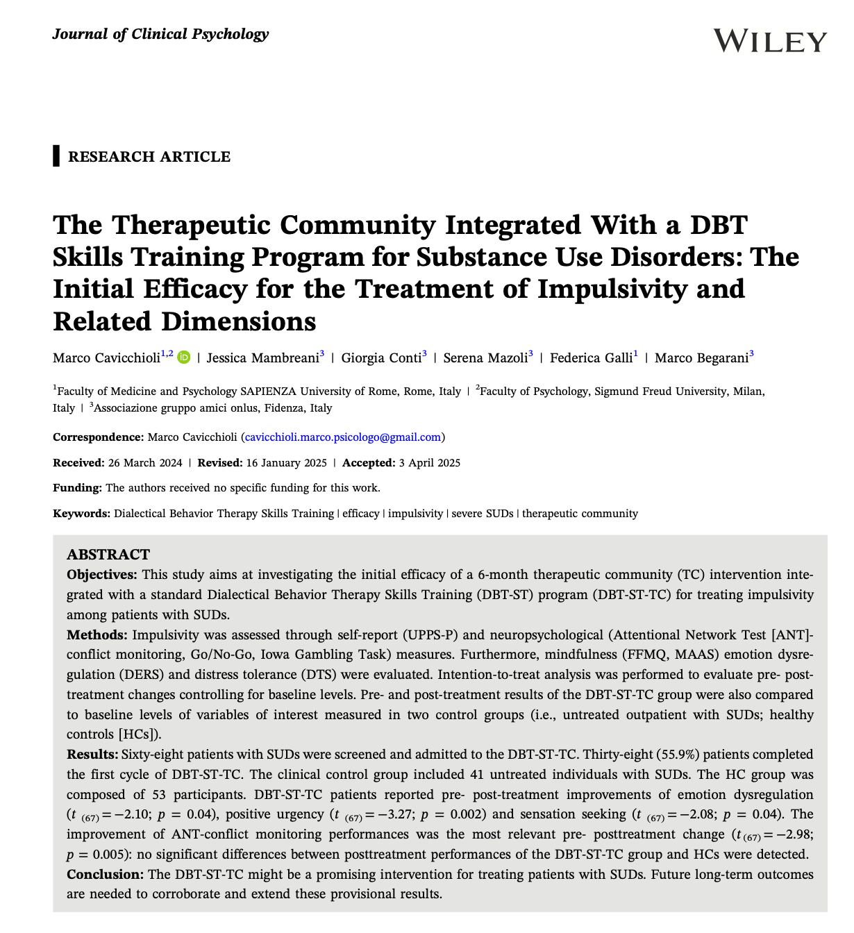 Accanto al modello sistemico, grazie al lavoro svolto presso la Fondazione Casa di Lodesana di Fidenza, ho maturato esperienze nell’applicazione della Terapia Dialettico Comportamentale (DBT), una psicoterapia validata scientificamente, particolarmente efficace per chi sperimenta emozioni intense, difficoltà relazionali, comportamenti impulsivi o momenti di forte stress.