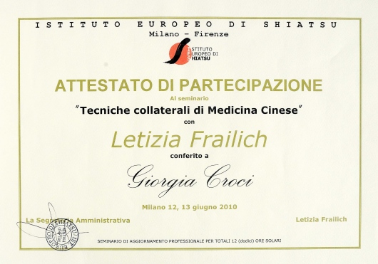 Ho approfondito molto anche l'aspetto corporeo: ho lavorato diversi anni come Operatrice Shiatsu professionista e come Counselor olistico, esperta di tecniche per il benessere completo dell'essere umano, in quanto unione di corpo-mente-spirito.