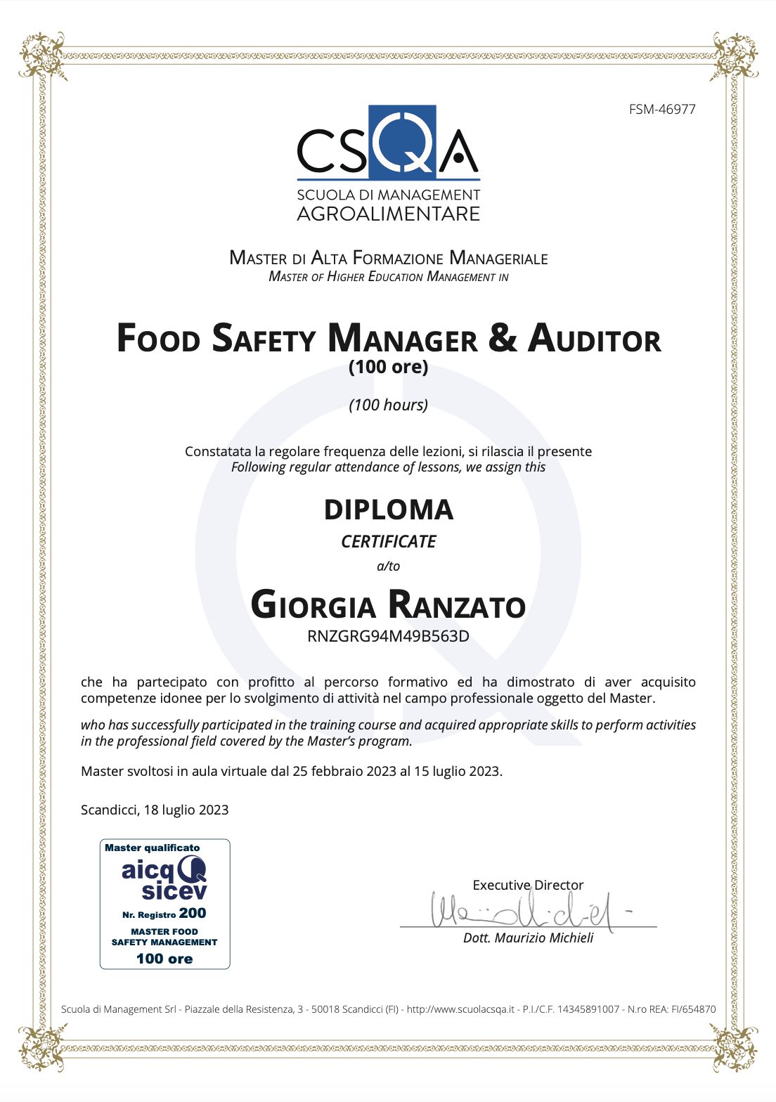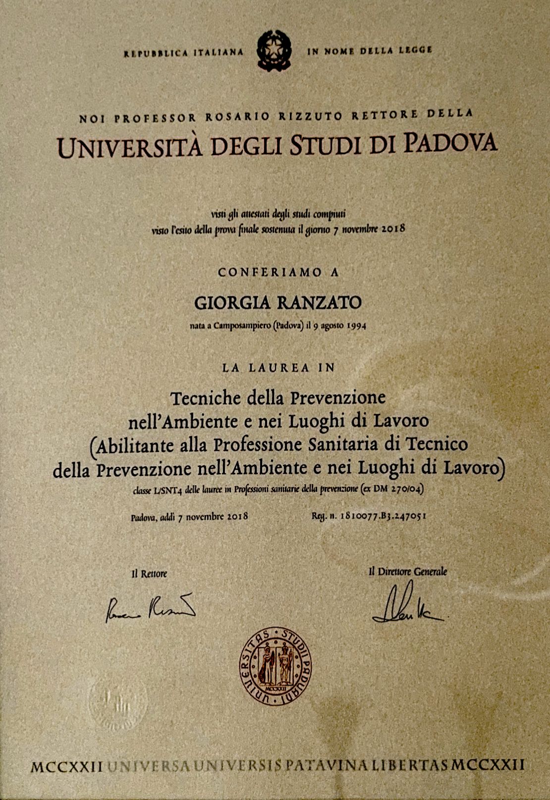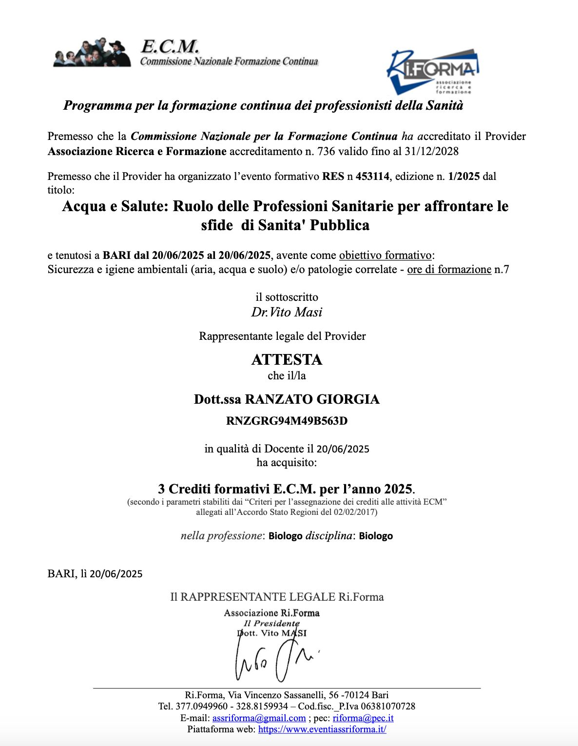 Oggi questo percorso mi consente una visione completa della nutrizione: dalla tavola alla sicurezza alimentare, con il metodo costante di promuovere uno stile di vita sano, consapevole e sostenibile.