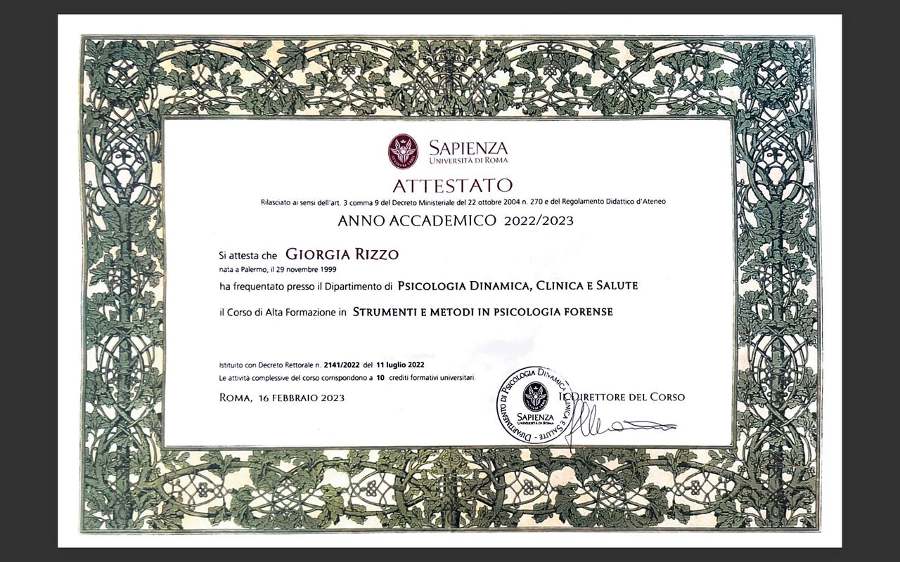 Desidero esprimere la mia più profonda gratitudine e raccomandare caldamente la Dottoressa Giorgia Rizzo. Sin dal primo incontro, ho percepito un ambiente di accoglienza, empatia e professionalità che mi ha permesso di aprirmi con fiducia e affrontare le mie difficoltà.