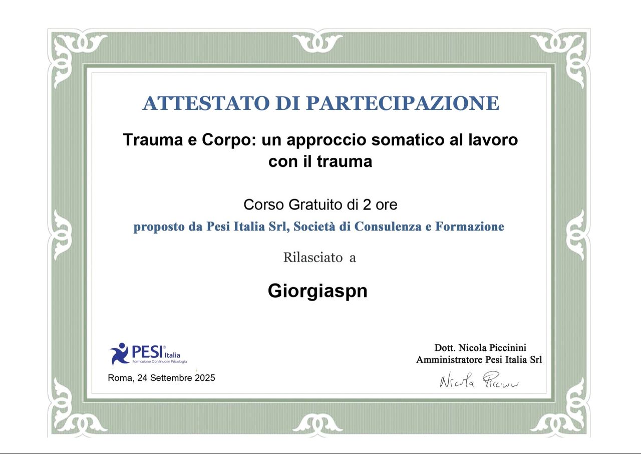 Grazie al suo supporto, oggi mi sento più forte, più presente e in equilibrio. La consiglio vivamente a chiunque senta il bisogno di fare chiarezza dentro di sé o attraversare un momento difficile con un valido aiuto accanto. Raccomandatissima.• Studio Privato - Dott.ssa Giorgia Spina • Consulenza LGBTQIA+ •