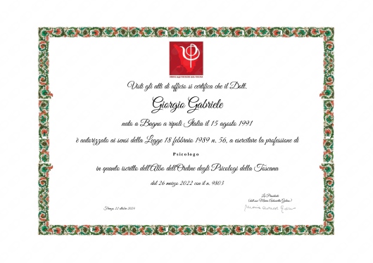 Ho iniziato un percorso con il dott. Giorgio Gabriele con molti dubbi e molte paure, ma fin dalla prima seduta mi sono sentita accolta e a mio agio. Il suo approccio è rispettoso e senza giudizio e questo mi ha permesso di aprirmi come non ho fatto mai. Dopo ogni seduta mi sento profondamente arricchita.