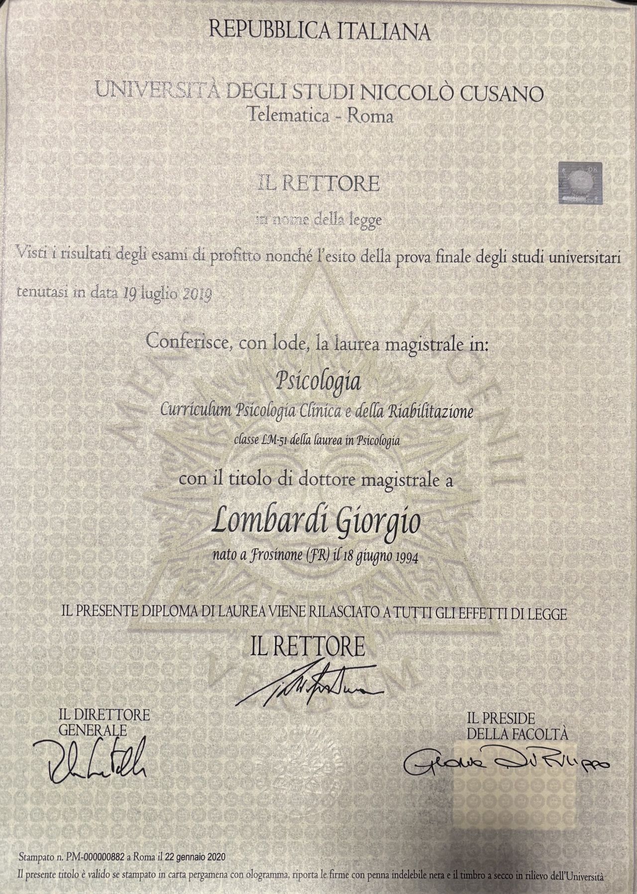 Sono uno Psicologo clinico e della riabilitazione con una specializzazione in Psicologia dello Sport e della Prestazione Umana.