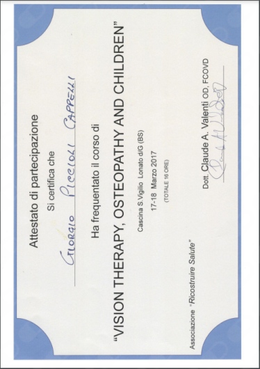 Consegue nel 2007 la laurea in fisioterapia riabilitativa, una specializzazione D.O. in osteopatia, e Master Universitari in:
