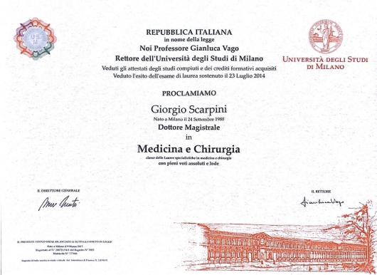 110/110 e lode. Ho ottenuto la specializzazione in Cardiologia nel 2019 presso lo stesso ateneo, sempre con
