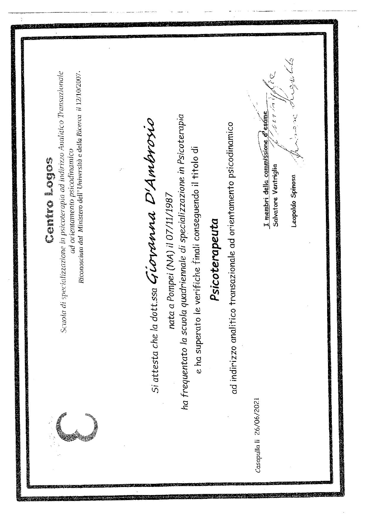 Ciao, sono Giovanna D'Ambrosio e sono una psicologa e psicoterapeuta.