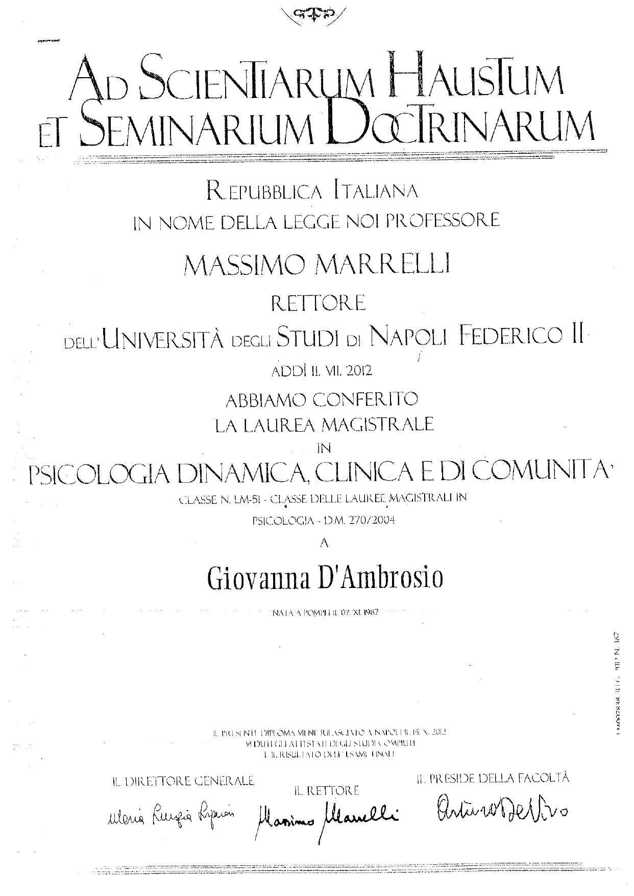 Hai avuto una visita con Giovanna D'ambrosio? Condividi quello che pensi. Grazie alla tua esperienza gli altri pazienti potranno scegliere il miglior dottore per loro.