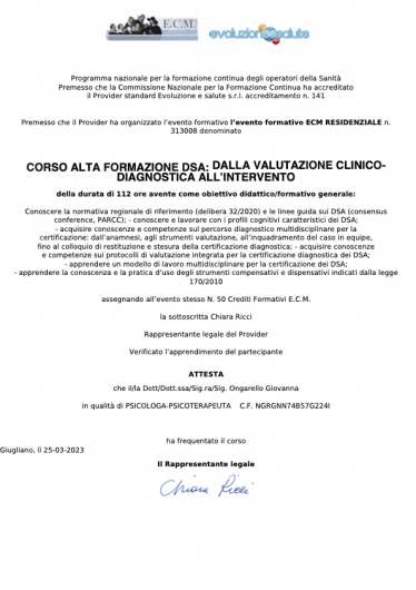 Io sono molto soddisfatta del percorso che ho intrapreso con Giovanna, mi lascia parlare per tirare fuori tutto ciò che sento e poi iniziamo ad analizzare punto per punto, entriamo sempre di più in profondità che neanche io lo credevo possibile. Mi sta aiutando tantissimo e lei è veramente capace di aiutarti ad affrontare tutto ciò che riguarda il mio percorso, passo dopo passo, dandoti quella tranquillità nell'affrontare anche le cose più dolorose e la sicurezza che non accadrà nulla!