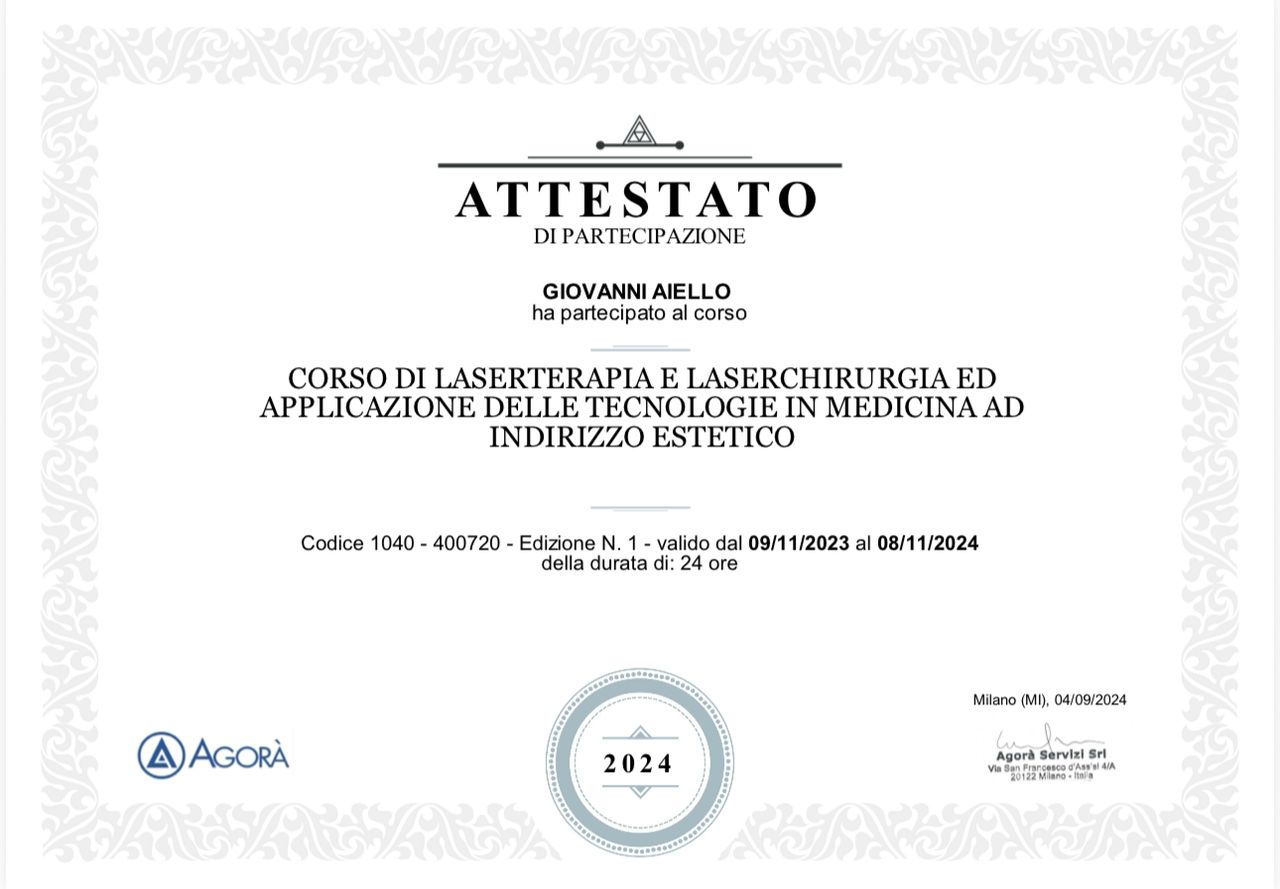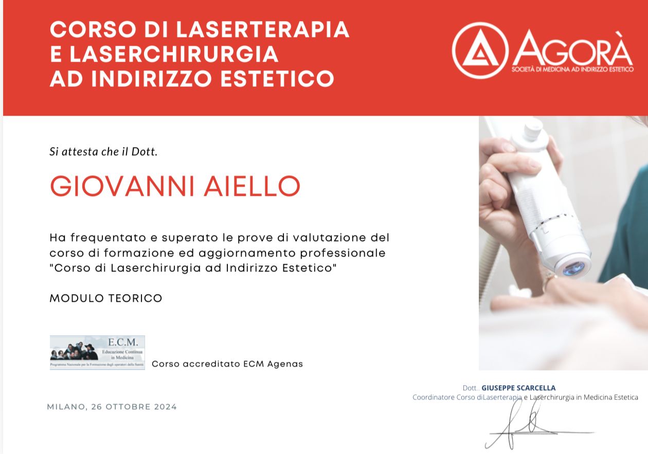 Il dottor Aiello mi ha dato un'ottima impressione già dalla prima visita in cui mi ha sottoposto ad un'approfondita visita e mi ha proposto un innovativo trattamento ringiovanente basato su radiofrequenze chiamato Morpheus 8. I risultati sono stati eccellenti dalle prime sedute e soprattutto ho apprezzato l'interesse del dottore nella valutazione dei miei progressi. Consigliatissimo