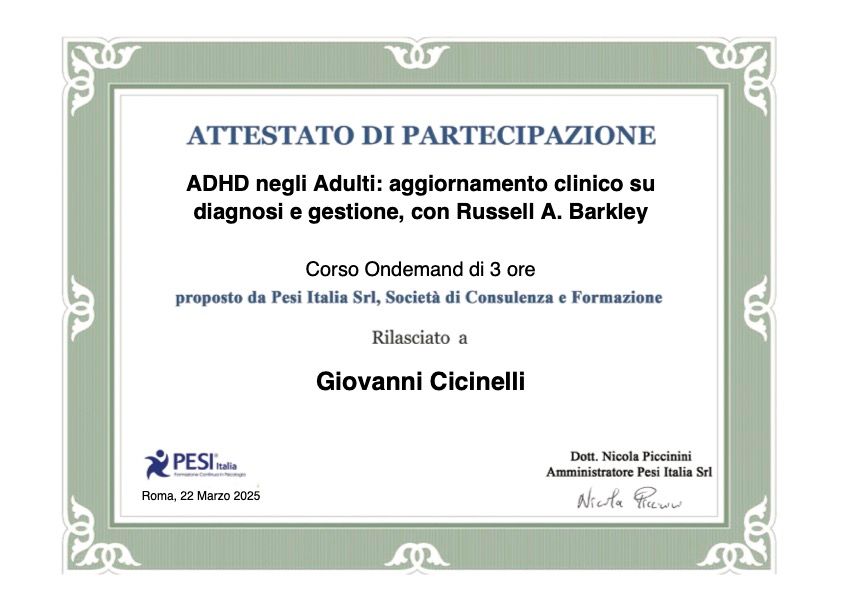 Sono Giovanni Cicinelli, psicologo con formazione sistemico-relazionale. Mi occupo di persone e famiglie che attraversano momenti di difficoltà, aiutandole a ritrovare equilibrio nelle relazioni e nella vita quotidiana.