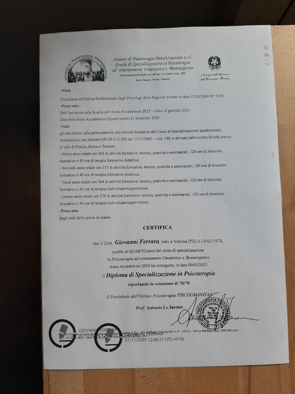Ho avuto il piacere di lavorare con il Dott. Ferrara per poco più di un anno e non posso che esprimere la mia gratitudine per il supporto ricevuto. Fin dal primo incontro si è creato un ambiente accogliente e privo di giudizio.