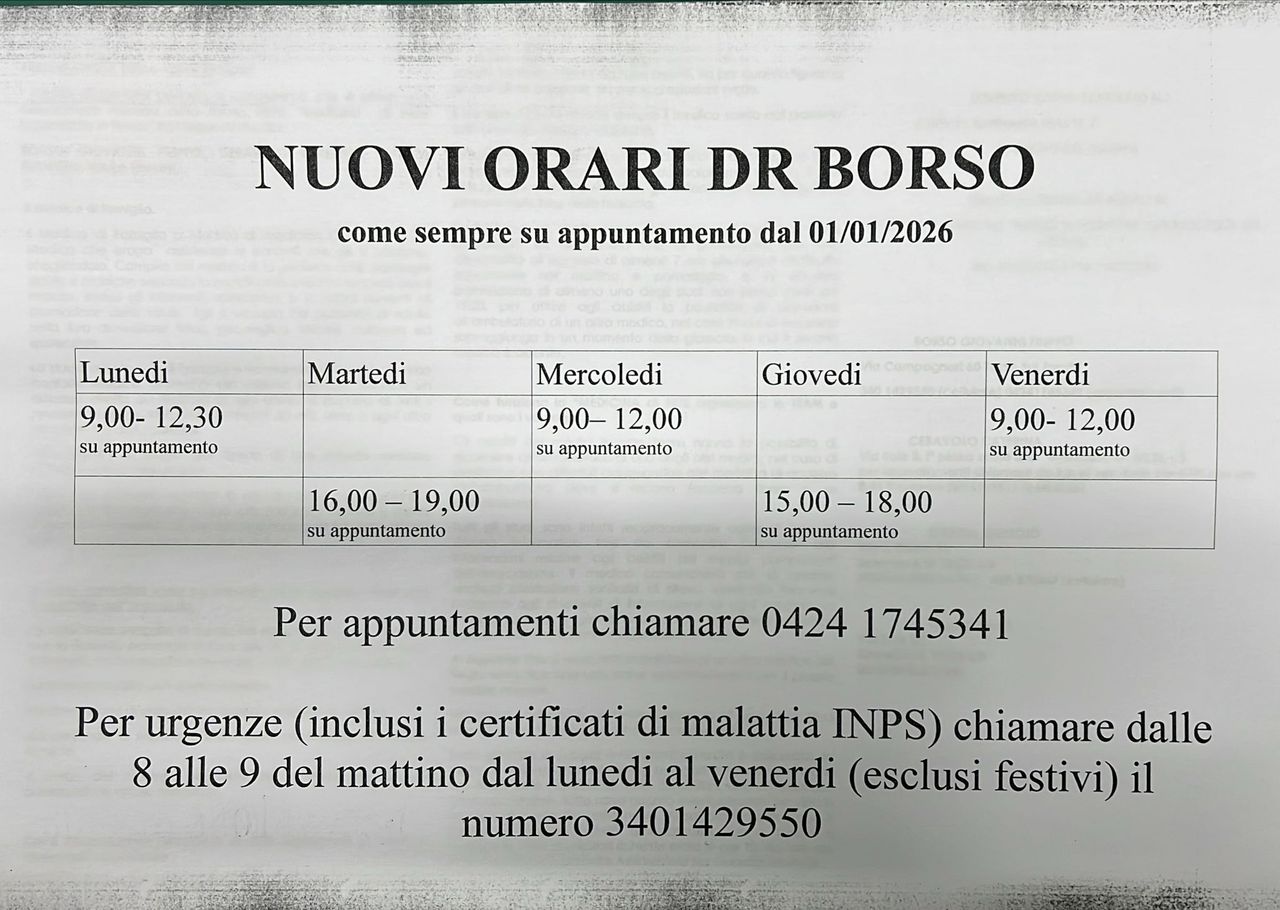 NUOVI ORARI AMBULATORIO DA GENNAIO 2026
