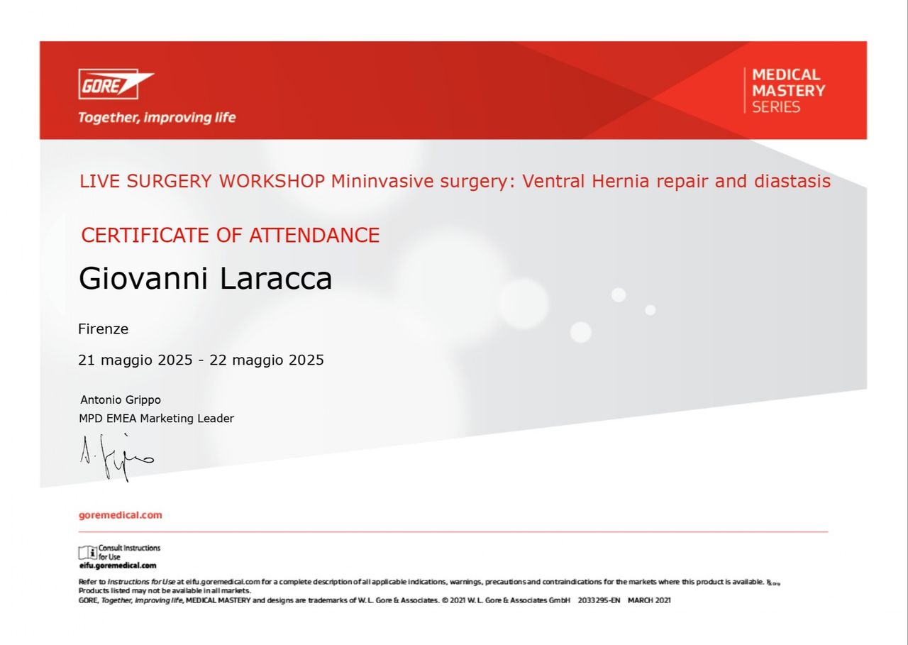 Sono un Medico Chirurgo con specializzazione in Chirurgia Generale e Dottore di Ricerca in Medicina Traslazionale e Oncologia. Dopo una prestigiosa fellowship di ricerca a Strasburgo, ho focalizzato la mia carriera sull'innovazione in chirurgia mininvasiva e robotica.