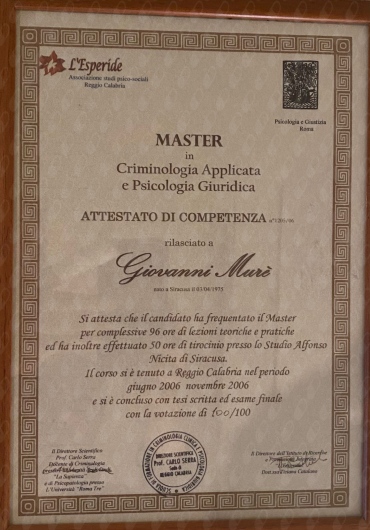 Sono uno psicologo e psicoterapeuta di Siracusa, specialista in psicoterapia cognitivo-comportamentale ed esperto in criminologia applicata e psicologia giuridica. La mia attività professionale è rivolta sia a un'utenza clinica che a organismi privati e istituzionali, svolgendo anche consulenza peritale di parte.