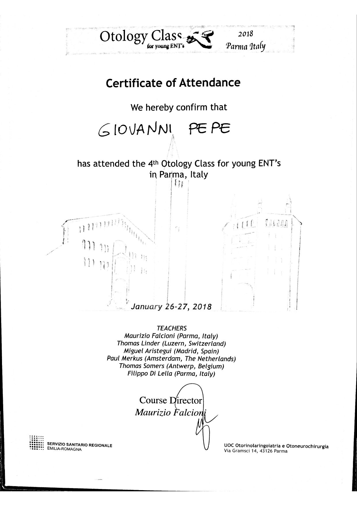 Membro dell'equipe di chirurgia dell'orecchio e base cranica laterale (Ospedale Maggiore di Parma).