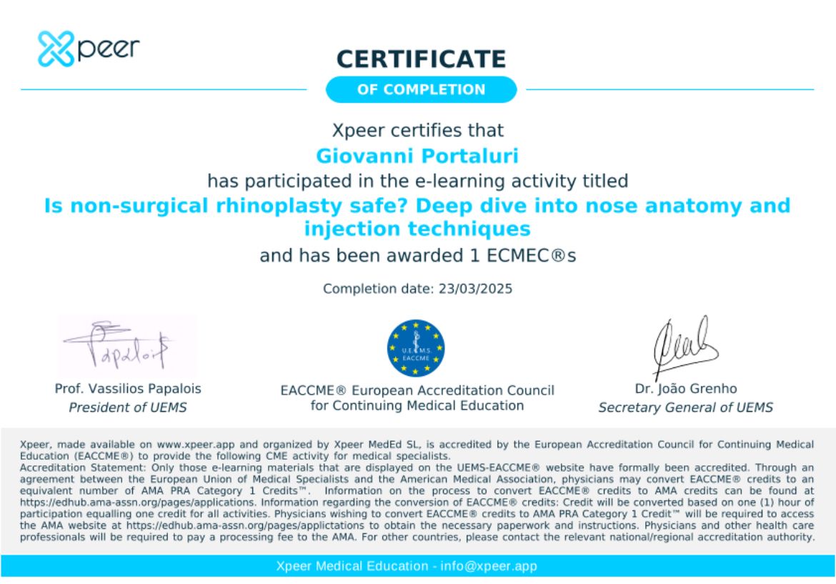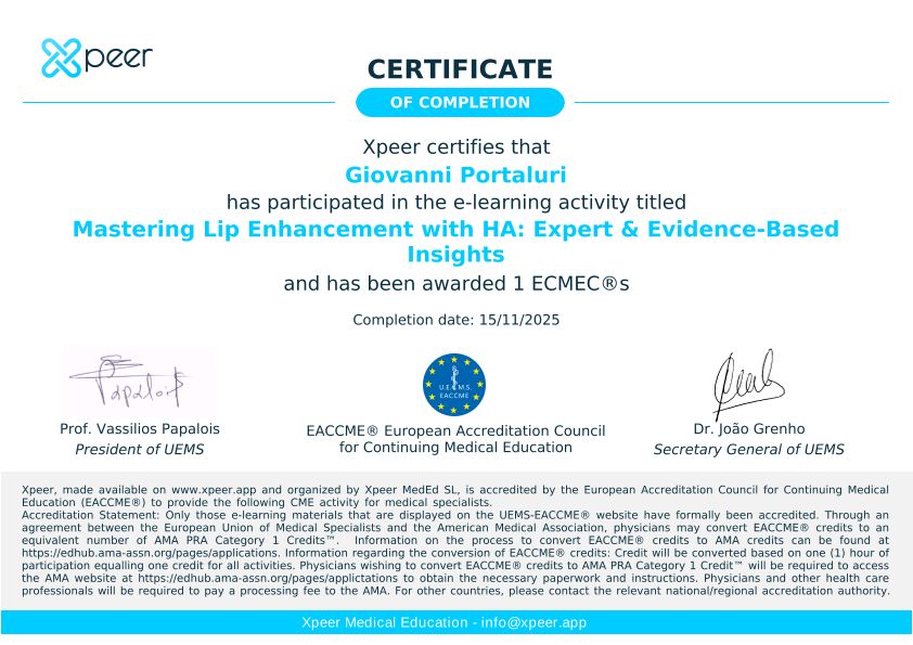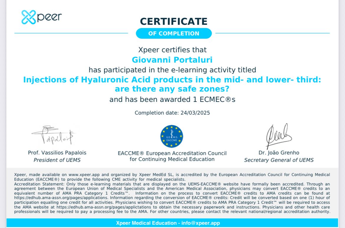 Lieto di aver partecipato ad una masterclass di Filler del terzo medio e labbra di Teoxane
