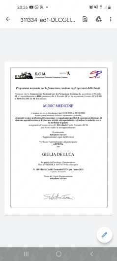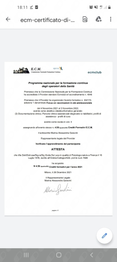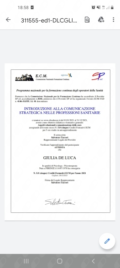 Sono Iscritta all’Ordine degli Psicologi della Toscana (2015).