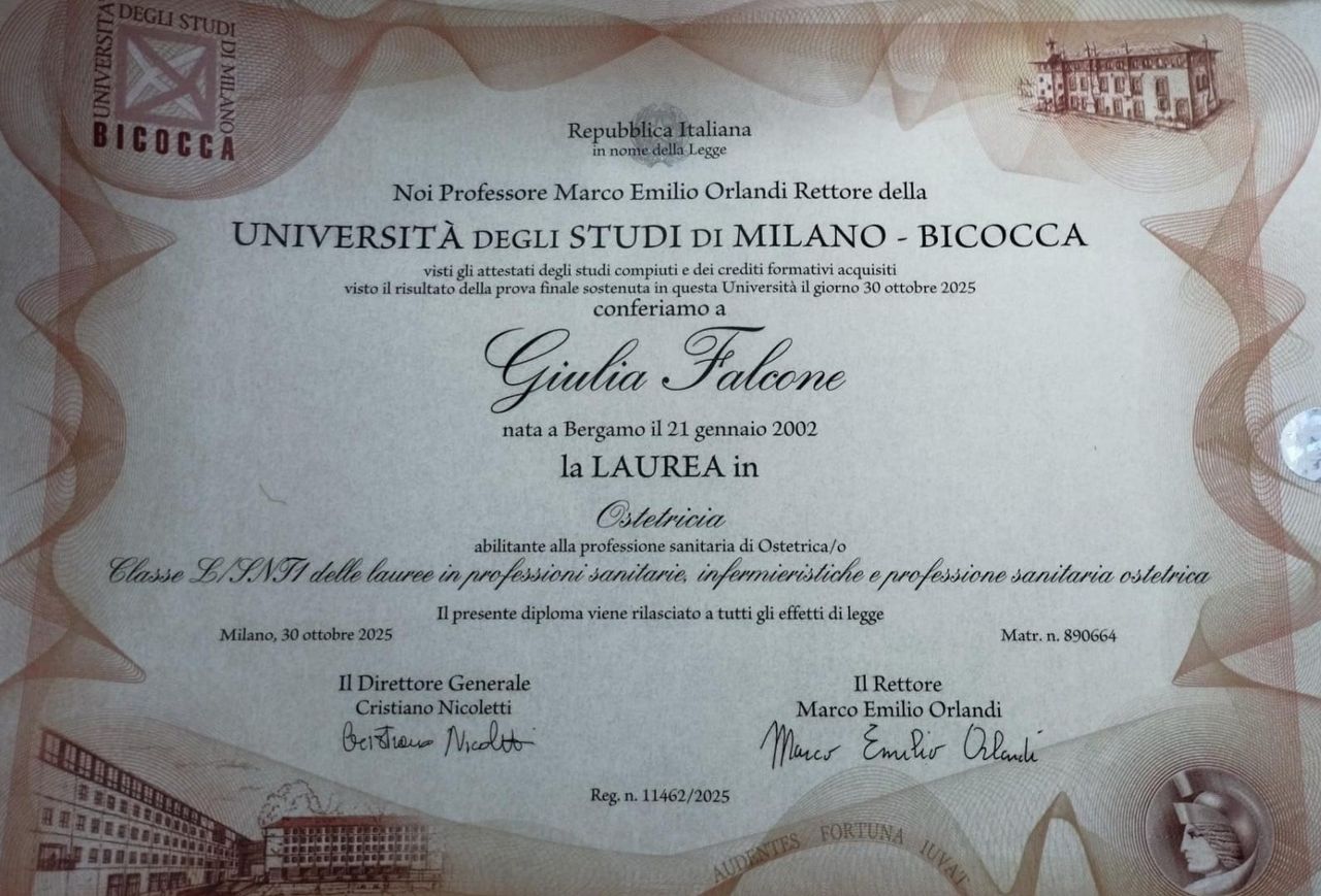 Sono Giulia Falcone, Ostetrica laureata presso l’Università degli Studi di Milano-Bicocca.