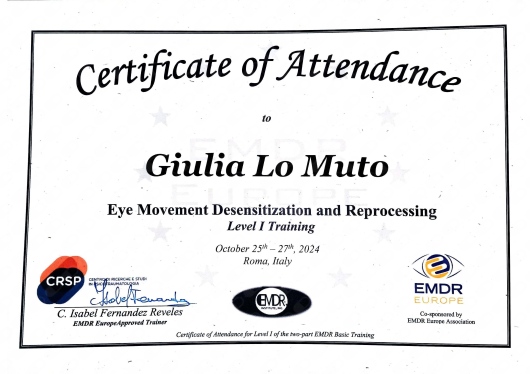 La dott.ssa Lo Muto si dimostra professionale, empatica e oltremodo capace nel metterti a tuo agio, con ascolto proattivo, rispettando tempistiche e modalità con le quali la persona esterna il proprio vissuto e le esperienze traumatiche. Un percorso, quello con lei, che mi ha portato gradualmente a ragionare e a lavorare su certi schemi, fonti di sofferenza, imparando a valutare e ad affrontare quelle situazioni disagevoli che per troppo tempo ho accettato e subito. La ringrazio di cuore per il suo importante sostegno e aiuto.