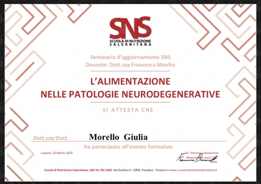 - 2° Corso di Alta Formazione in Nutrizione Clinica e funzionale - dott.ssa Manfra - SNS