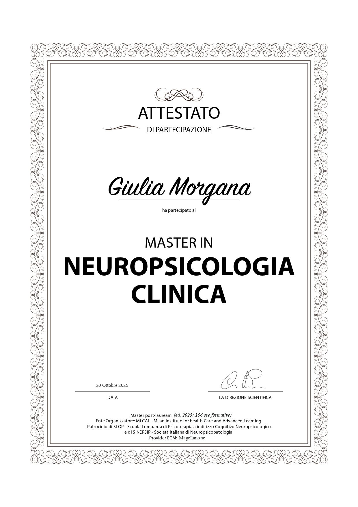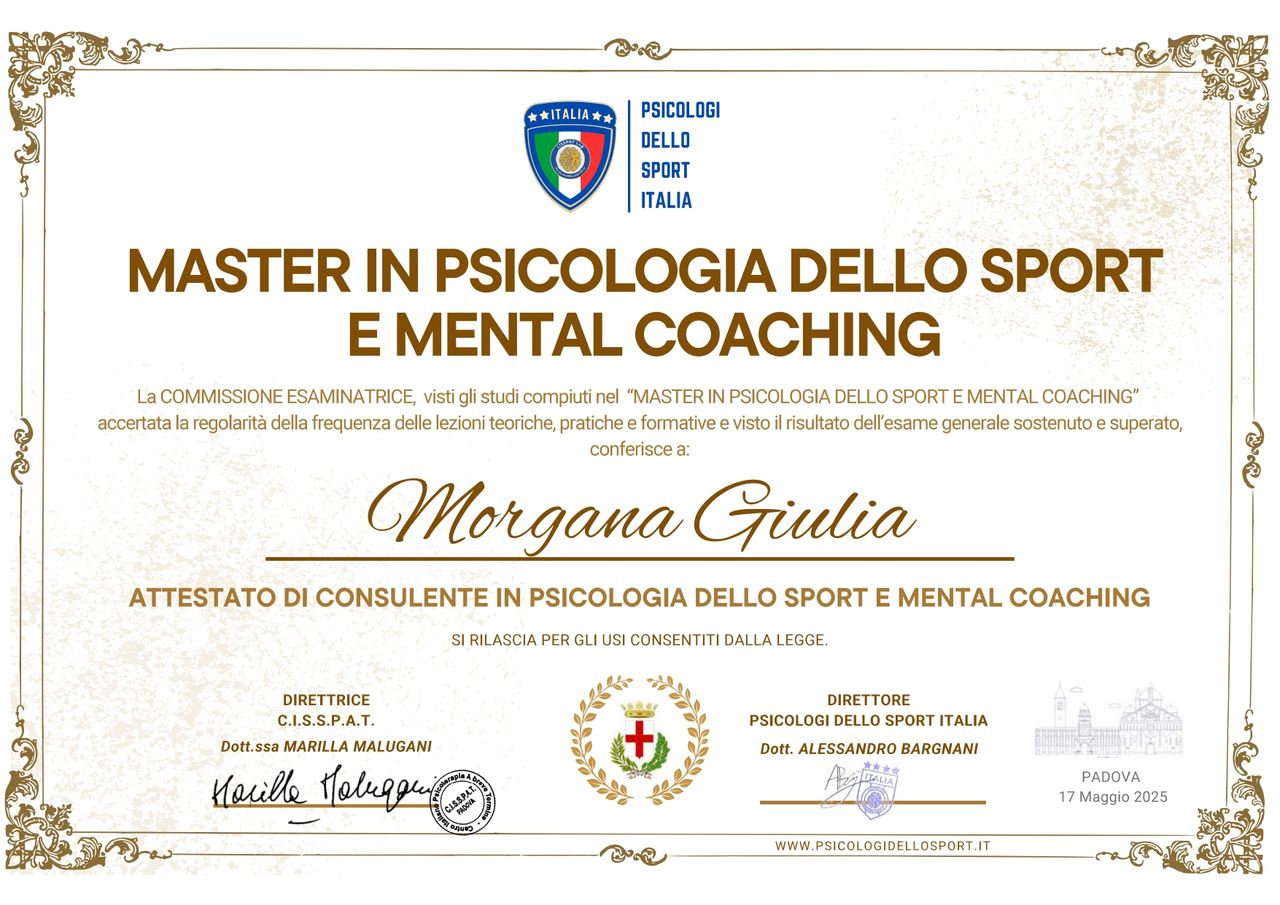 Sono una psicologa clinica, con una formazione che integra l’ambito clinico e quello sportivo. Ho conseguito due master, uno in neuropsicologia clinica e uno in psicologia dello sport e mental coaching.
