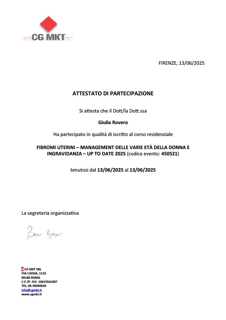 Attualmente la Dr.ssa Rovero svolge attività di assistenza come Dirigente Medico presso l’Unità Operativa di Ginecologia e Ostetricia dell’Ospedale Santa Maria Annunziata di Bagno a Ripoli (Firenze), diretta dal Dott. Alberto Mattei, dove si occupa principalmente di: