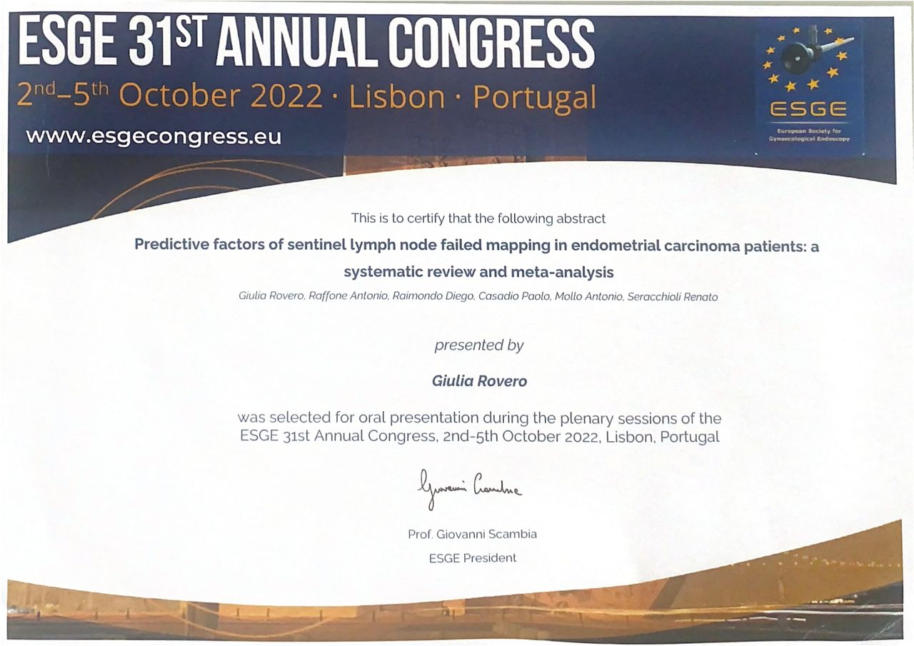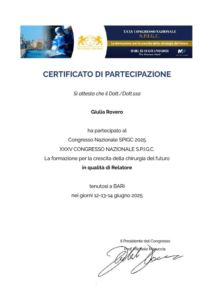 Nel 2022, in corso di specializzazione, ha svolto un anno di formazione all’estero presso l’Hopital Necker Enfants Malades e l’Hopital Lariboisière di Parigi, occupandosi principalmente di sala parto e di chirurgia ginecologica oncologica.