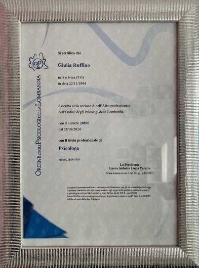 Sento nel profondo il bisogno di ringraziare la dott.ssa Ruffino per il percorso affrontato insieme. Mi sono sentito compreso, valorizzato e ascoltato. Ho sperimentato grande empatia e un supporto prezioso per superare momenti difficili.