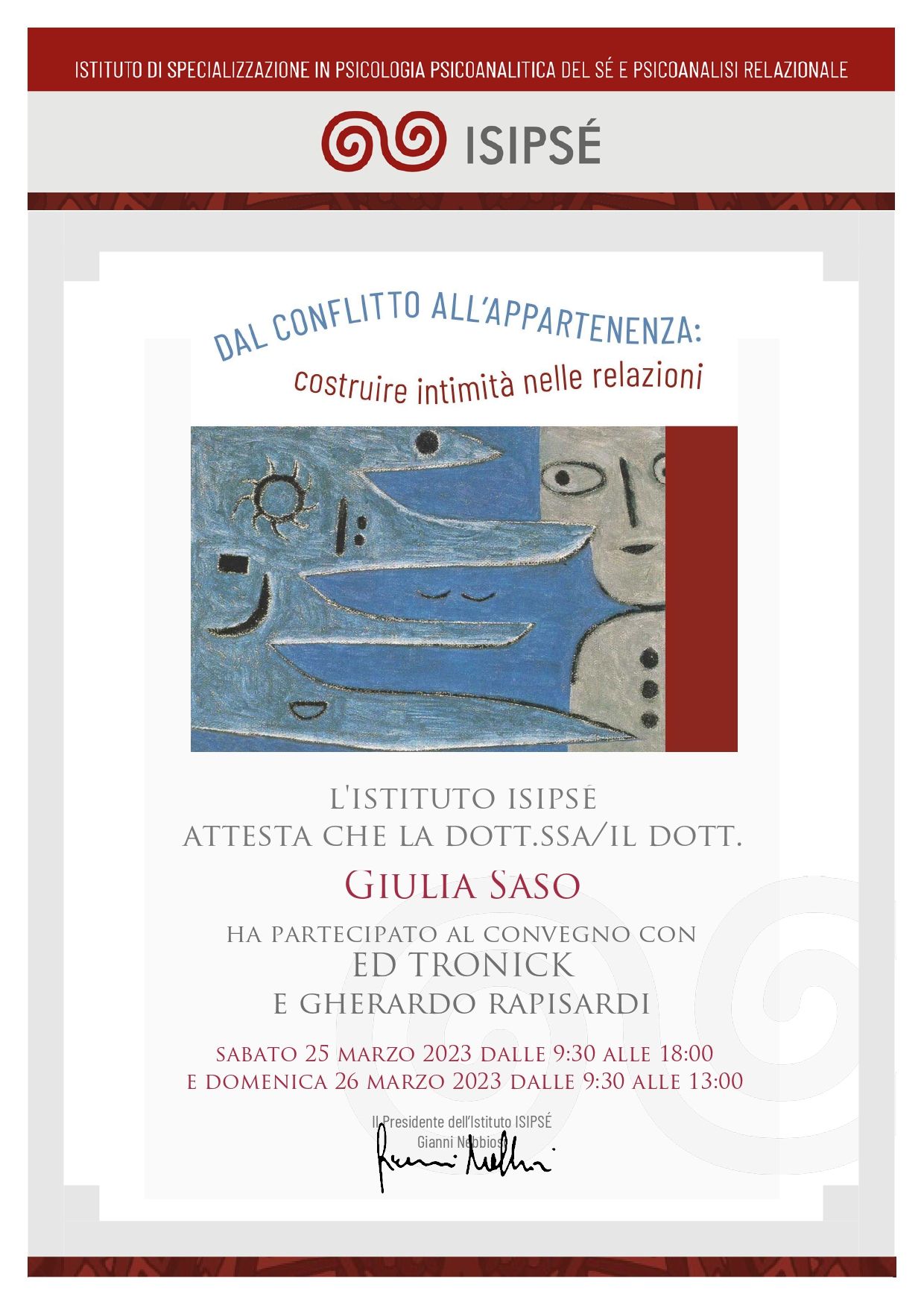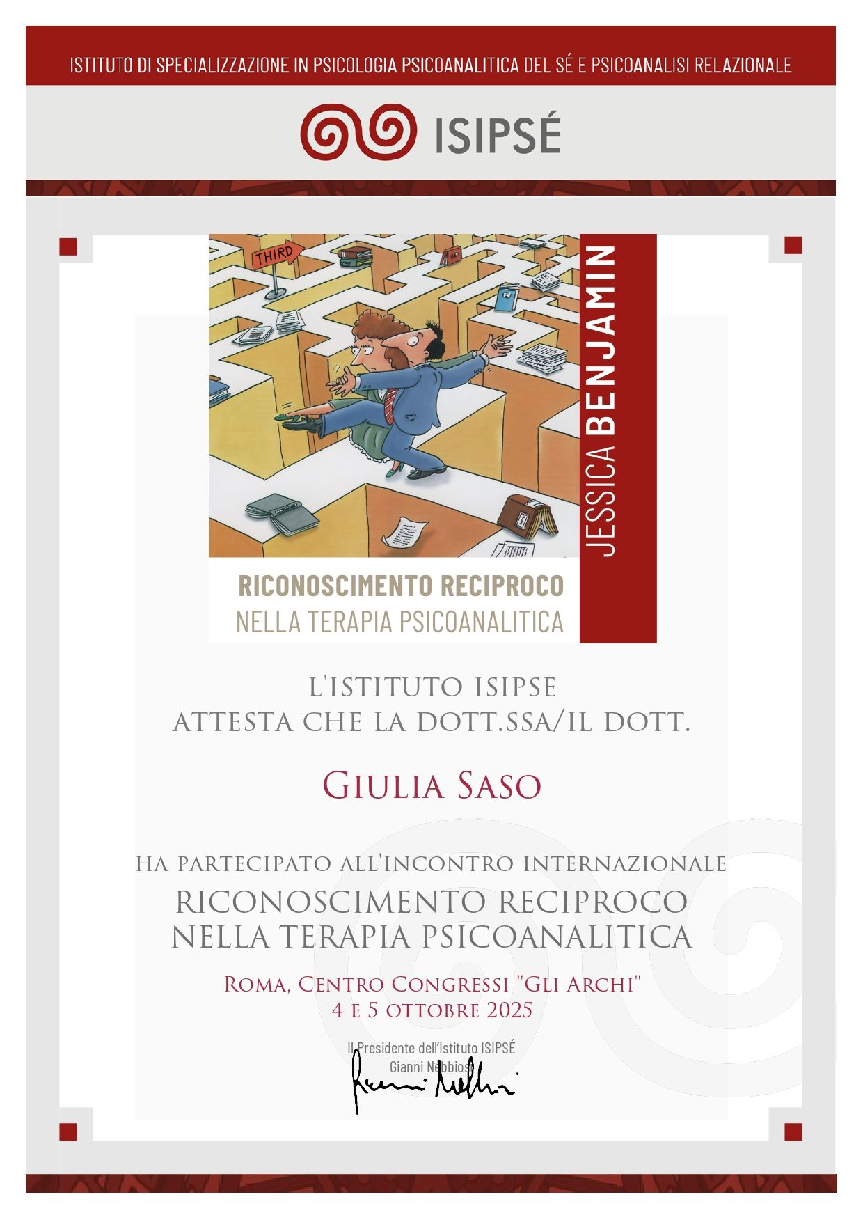 Ho iniziato il mio percorso a marzo con molti dubbi e un certo distacco, perché non sapevo cosa aspettarmi né come affrontarlo. La Dottoressa Saso mi ha dato il tempo di cui avevo bisogno e, con naturalezza, abbiamo cominciato a esplorare insieme alcuni dei nodi più intricati che mi portavo dentro. Pur mantenendo sempre un atteggiamento professionale, ci sono stati momenti di autentica vicinanza in cui mi sono sentita davvero sostenuta. La consiglio senza esitazioni