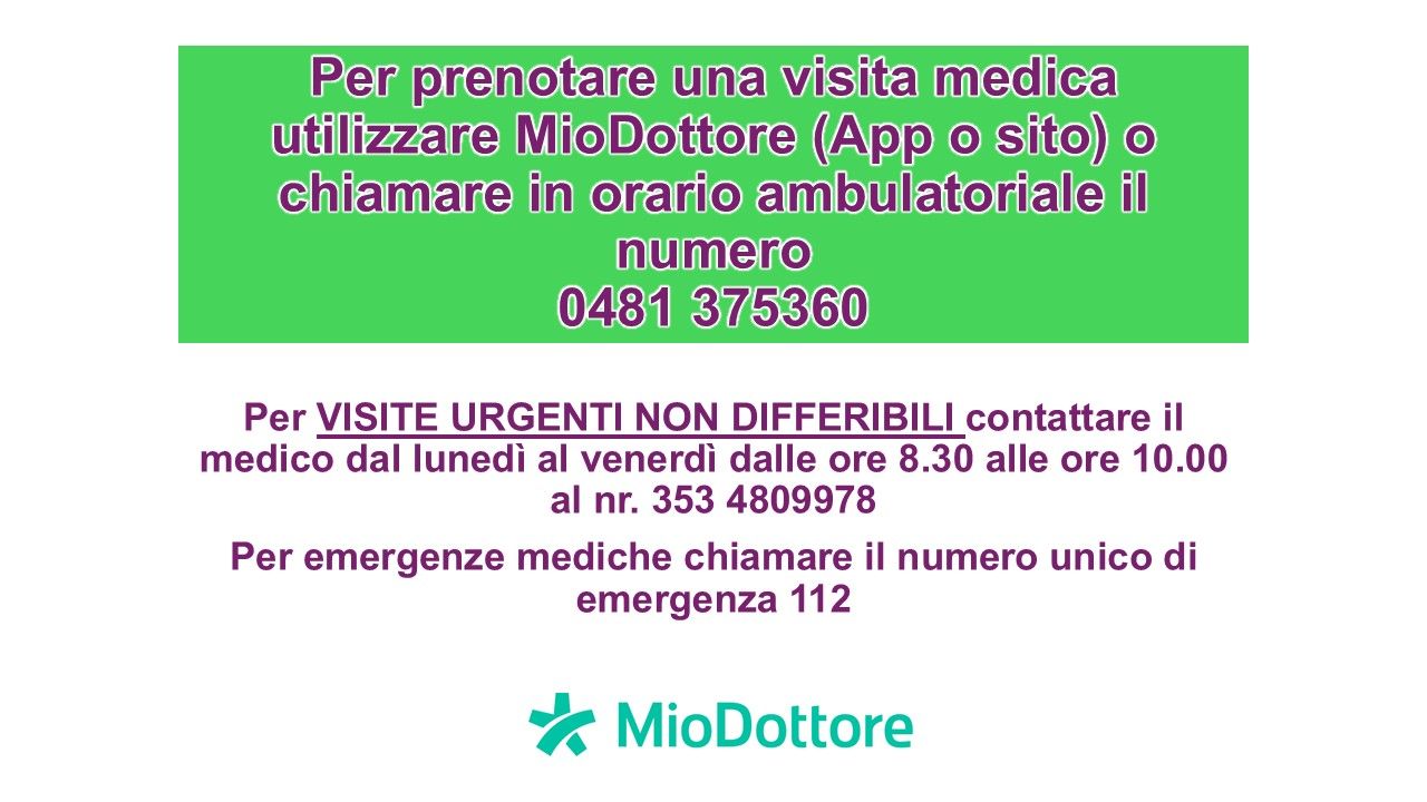 - tramite MioDottore (sito o App) cliccando "PRENOTA UNA VISITA"