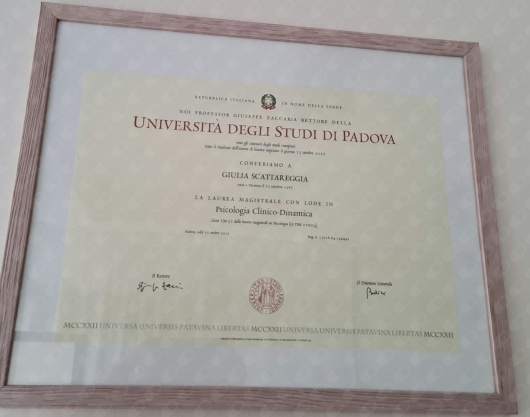 Ho conseguito la Laurea magistrale con Lode in Psicologia Clinico-Dinamica all’Università di Padova.