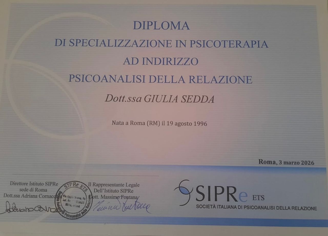 Sono la Dott.ssa Giulia Sedda, psicologa e psicoterapeuta con orientamento psicoanalitico relazionale. La scelta di diventare psicoanalista nasce dal desiderio di comprendere in profondità il mondo interno e le dinamiche relazionali che danno forma all’esperienza umana. L'obiettivo del mio lavoro è aiutare le persone a dare un senso alle proprie esperienze e al proprio mondo interno affinché possano costruire nuove modalità di stare con sé stessi e con gli altri. La sofferenza, se vista e riconosciuta, può trasformarsi in crescita; ogni crisi, se accolta, può diventare l'occasione per aprirsi a nuove narrazioni e può portare a un cambiamento interno profondo e autentico. Il cuore del mio lavoro terapeutico è la relazione perché è nell'esperienza di una relazione autentica, sicura e riflessiva che il paziente può imparare a rileggere e riscrivere la propria storia. Quello che propongo ai miei pazienti è uno spazio autentico di condivisione, ascolto profondo e comprensione, uno spazio in cui è possibile il cambiamento e in cui la sofferenza può trovare il modo di trasformarsi ed evolvere.