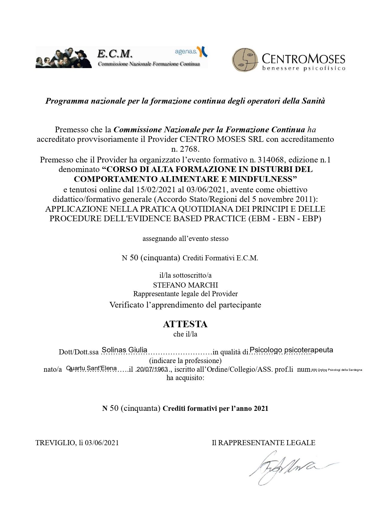 • Alta Formazione in Disturbi del Comportamento Alimentare e Mindfulness Centro Moses SRL – Area Formazione 03/06/2021