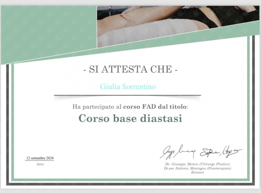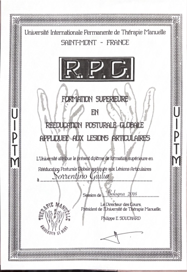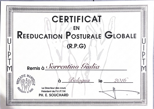 Sono la dott.ssa Giulia Sorrentino, fisioterapista dal 2012 e specializzata in Rieducazione Postulare Globale (metodo Souchard) , Osteopatia e fisioterapia dermatofunzionale(dermato-estetica).