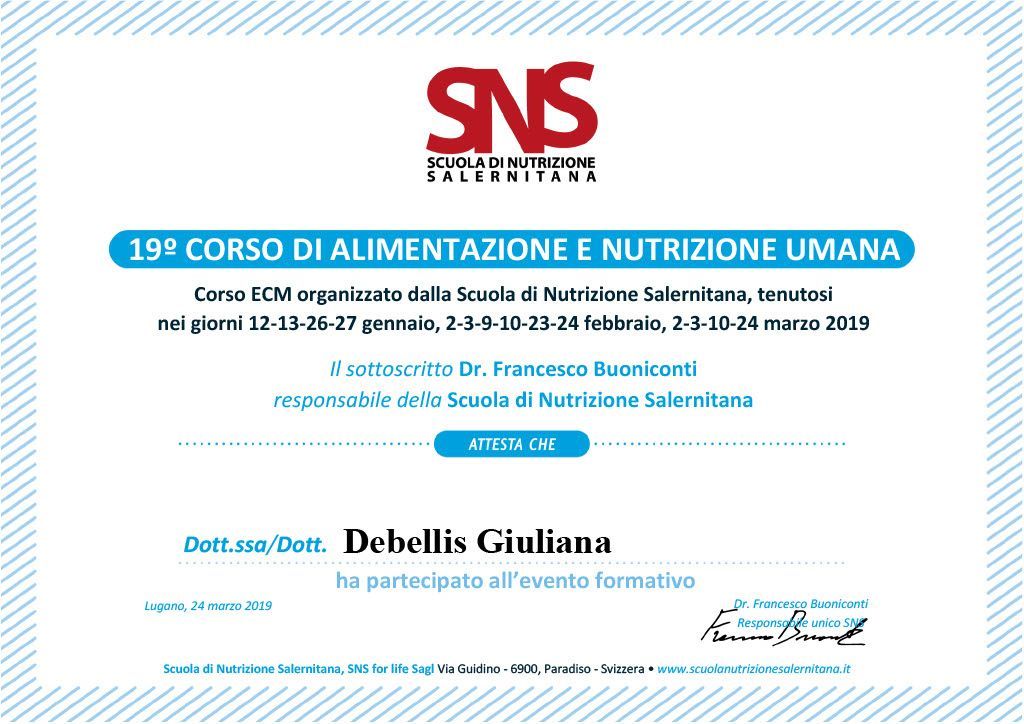 Mi chiamo Giuliana Debellis e sono Farmacista e Biologa Nutrizionista Clinica e Sportiva.