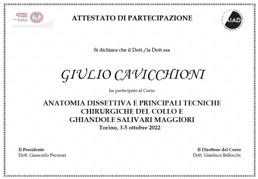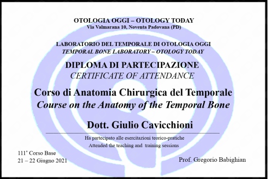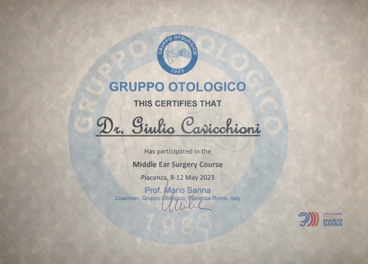 Durante la mia formazione ho partecipato a numerosi corsi di aggiornamento, con particolare indirizzo per la chirurgia Otologica e per la chirurgia Endoscopica dei Seni Paranasali.