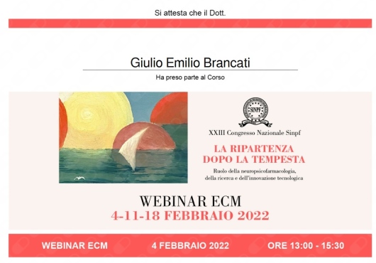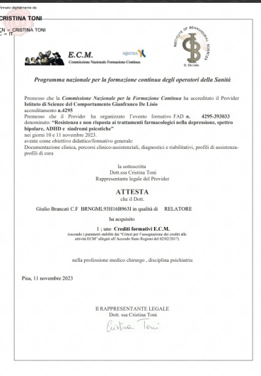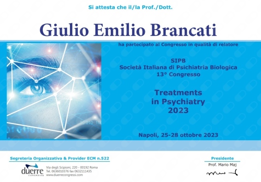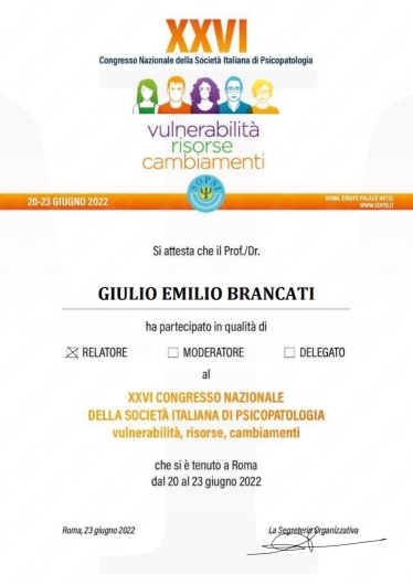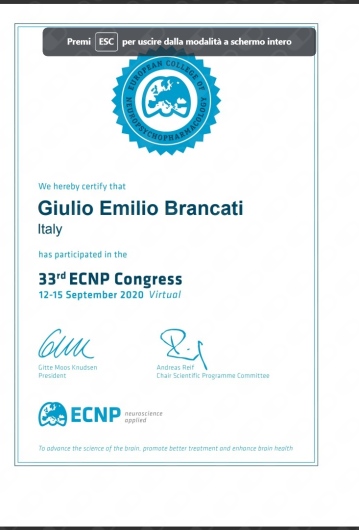 Ho effettuato periodi di studio in Italia presso l’IRCCS Fondazione Stella Maris, e all’estero presso l’Ospedale Universitario di Ginevra (Svizzera), l’Università di Bergen (Norvegia) e la Dalhousie University (Halifax, Canada). Ho partecipato in qualità di relatore a numerose conferenze scientifiche sia in Italia (SOPSI, SINPF, SIP, SIBP) che all’estero (IPA, Lisbona 2023; MMIV center conference, Bergen 2022).