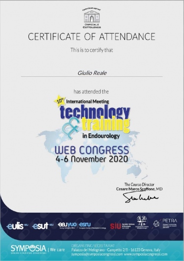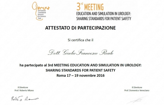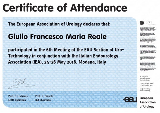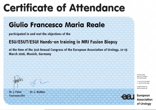 Consapevole della importanza della prevenzione e la diagnosi precoce di determinate patologie, si mantiene aggiornato sia in ambito clinico che scientifico, partecipando come relatore e moderatore a numerosi congressi nazionali ed internazionali. E' socio attivo della Società Italiana di Urologia (SIU) ed della Società Europea di Urologia (EAU).