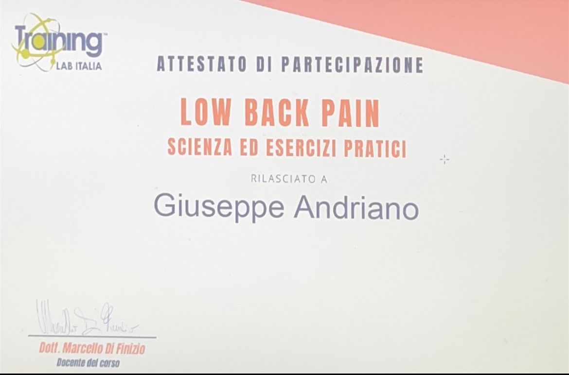 Salve, sono Giuseppe Andriano laureato in Scienze Motorie, con magistrale in Sport e Management e osteopata in formazione presso la scuola di osteopatia Atsai. Sono un atleta agonista di calcio e lavoro come personal trainer in palestra, motivo per cui cerco di trasmettere la mia passione verso lo sport: l'obiettivo è rendere l'attività fisica una parte essenziale e motivante della giornata, che sia praticata come attività di svago, come lavoro, come obiettivo o come benessere fisico e mentale, in presenza o meno di patologie o dolori fisici.