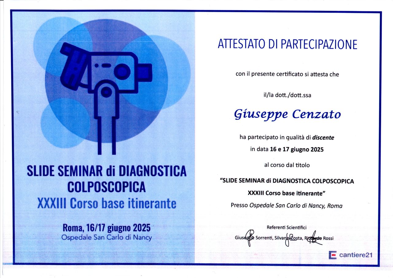 Lo Studio vanta un’esperienza di 35 anni nel settore della chirurgia ostetrica e ginecologica, ed è diretto e guidato dal dottor Giuseppe Cenzato, laureato in Medicina e Chirurgia e specializzato in Ostetricia e Ginecologia. Il dottore ha alle spalle un percorso formativo lungo e approfondito, che continua ancora oggi attraverso la partecipazione a corsi di aggiornamento in fecondazione assistita, diagnostica prenatale ecografica e laboratoristica, chirurgia ginecologica.