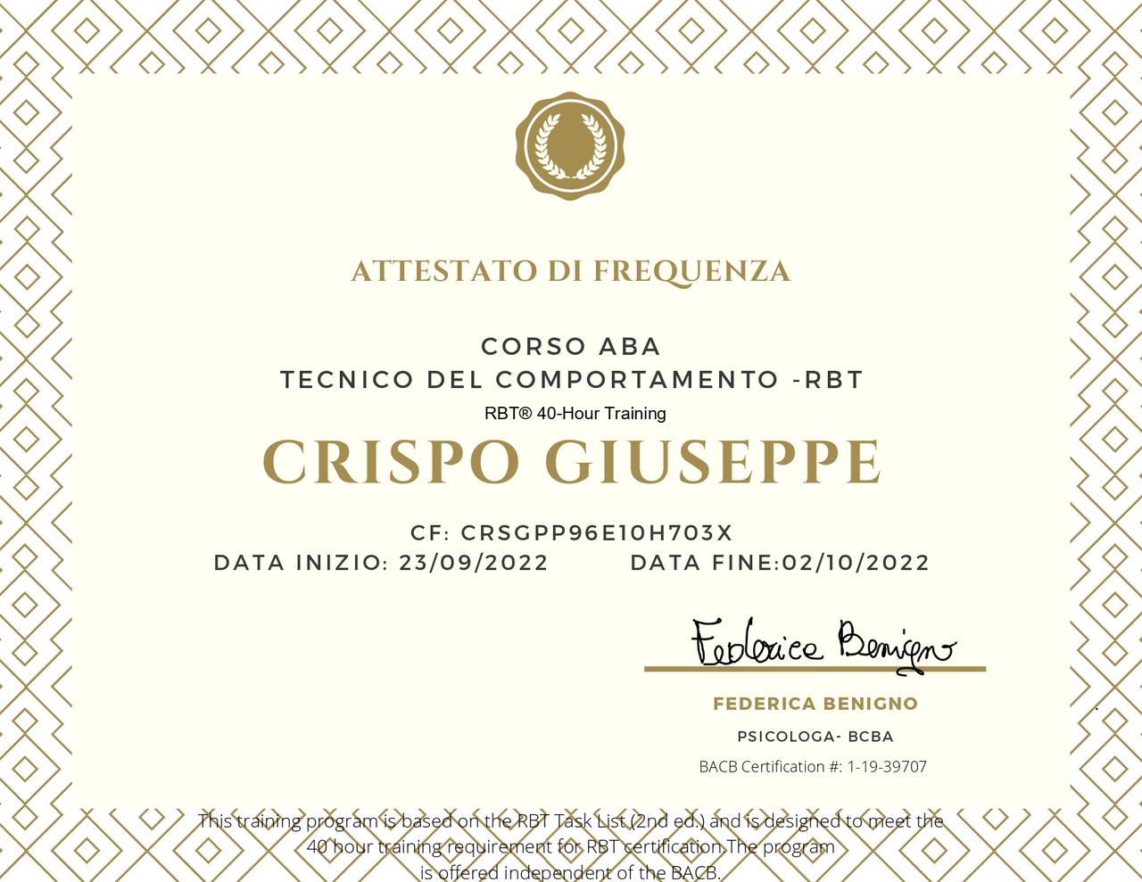 Mi sono rivolta al Dottore Giuseppe Crispo dopo vari ripensamenti, ed è una scelta che rifarei. Ho iniziato da poco il mio percorso terapeutico con il dottore , ma sento già di poter dire quanto sia meraviglioso il lavoro che stiamo facendo su di me. Il mio percorso è ancora lungo ma fin'ora posso dire che le sedute sono state sempre costruttive e stimolanti. Consiglio il dottore sia per la sua professionalità e riservatezza che per le sue competenze. Ritengo sia un professionista molto valido.