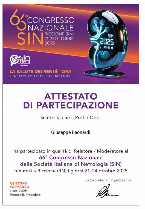 Sono Membro della Società Italiana di Nefrologia dal 2016 e Dell'ISFA ( International Society of Apheresis) dal 2025 alla Società Americana di Nefrologia.