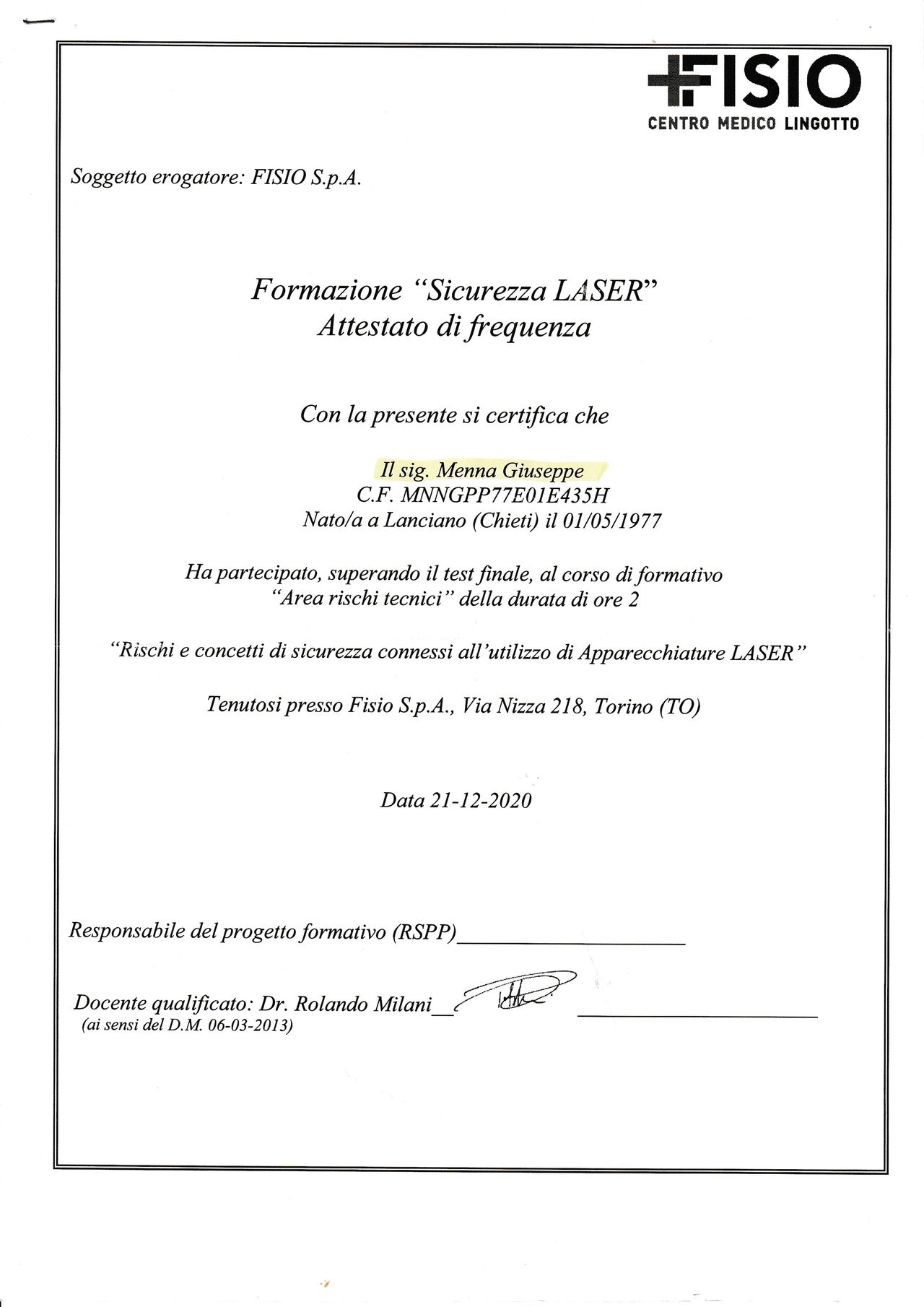 Sono andata dal dottor menna per sedute di rieducazione funzionale, laser terapia e massaggi alla cervicale per dolori e labirintite ricorrente.