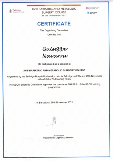 Presidente Società Italiana di Chirurgia Bariatrica 2023-2025