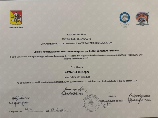 Direttore di Unità Operativa complessa presso AOU G. Martino di Messina dal 2003