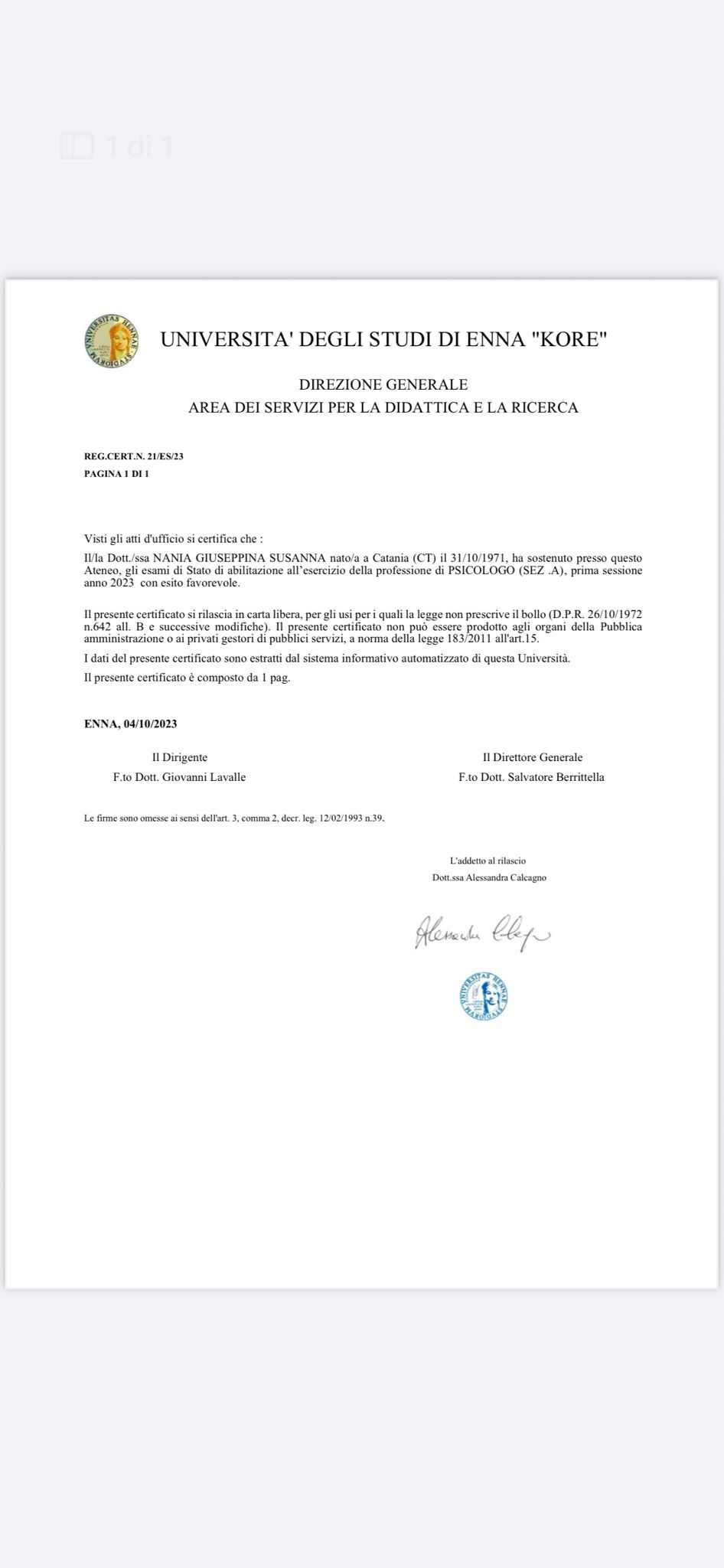 Dott.ssa Giuseppina Susanna Nania