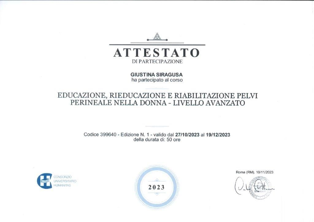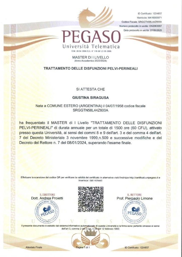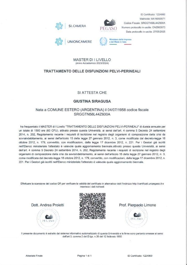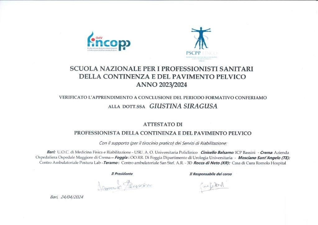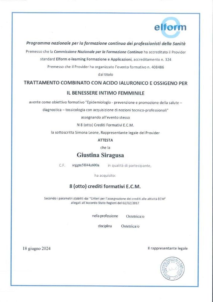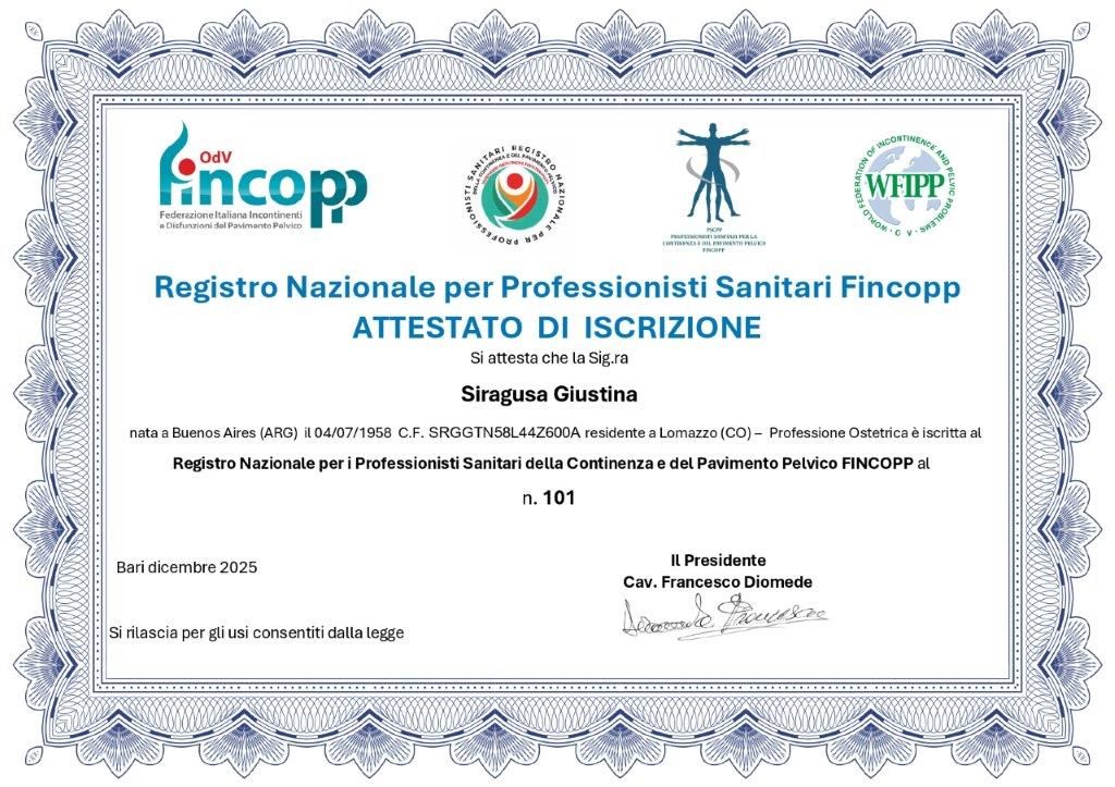 Giustina Siragusa, Ostetrica esperta terapista del pavimento pelvico